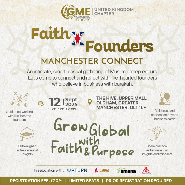 We connect visionaries, founders, professionals, investors, and ecosystem builders, creating a vibrant network where entrepreneurship thrives in harmony with Islamic values. Your idea is more than trade. It is worship. It is change. Step forward and build with a heart full of trust in Allah.